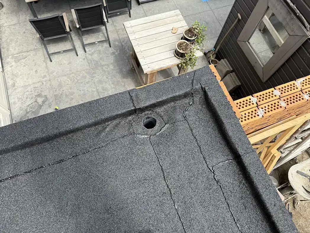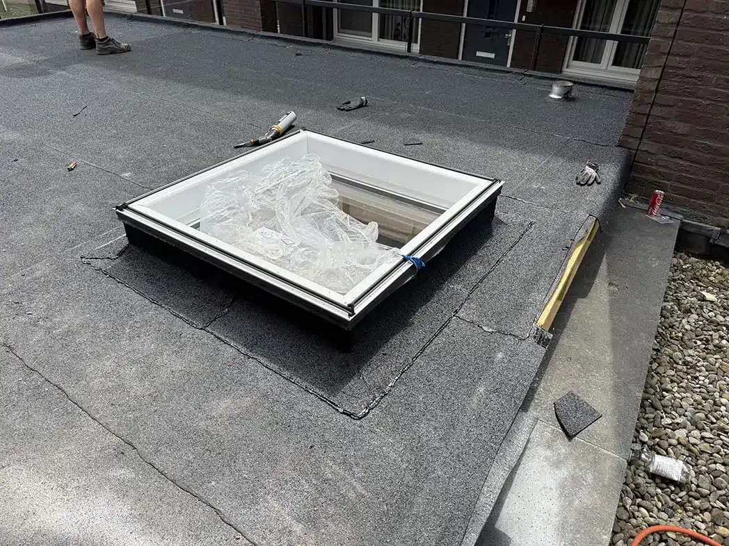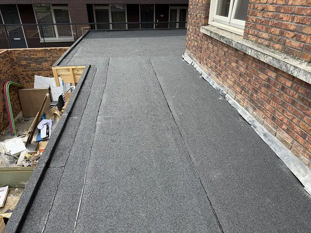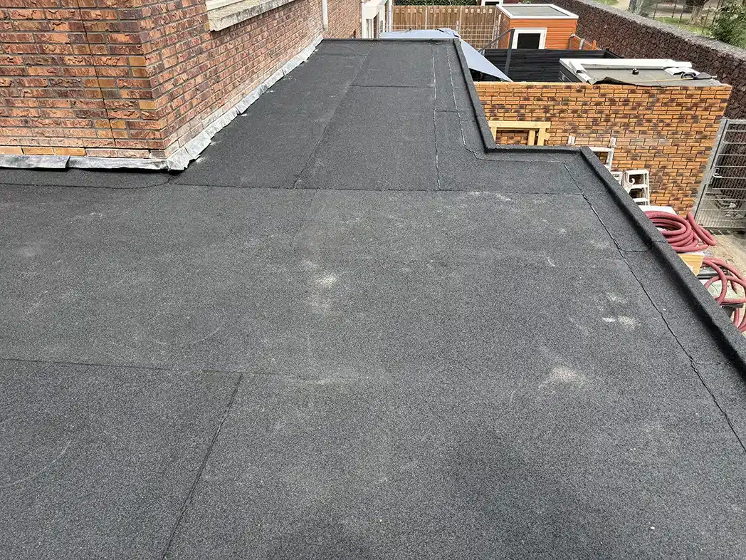 - Het vakkundig aanbrengen van een nieuwe bitumen dakbedekking, volledig waterdicht gebrand.