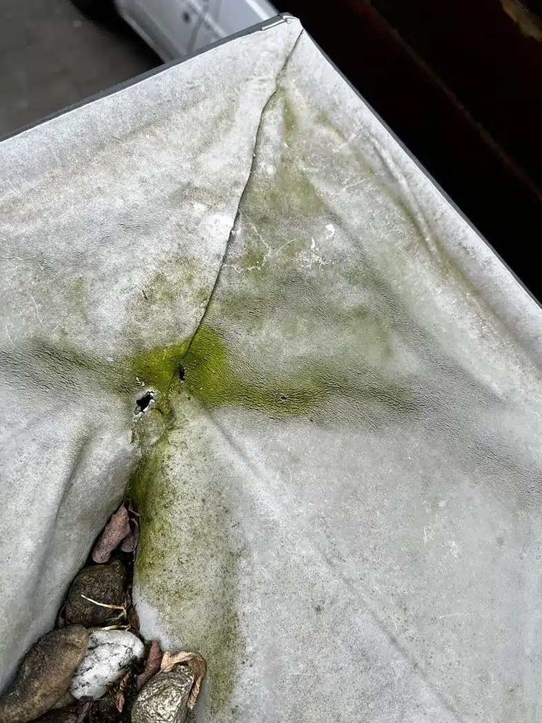 De schuur had al langere tijd last van lekkage door een versleten en slecht aansluitende kunststof dakbedekking. De ondergrond was nog in redelijke staat, maar de waterdichtheid was onvoldoende. Omdat de schuur intensief wordt gebruikt, was een betrouwbare en langdurige oplossing noodzakelijk.