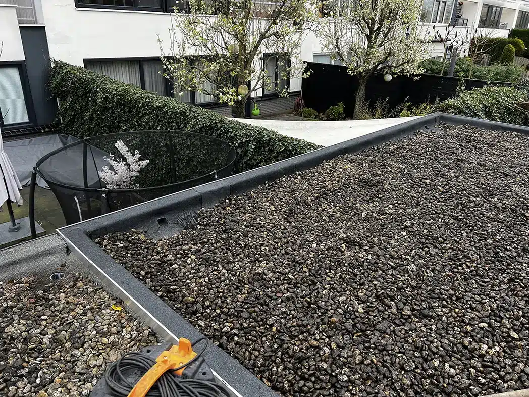 • Verplaatsen en later terugplaatsen van alle kiezelstenen op het dak.