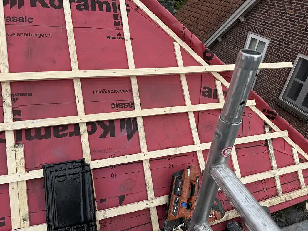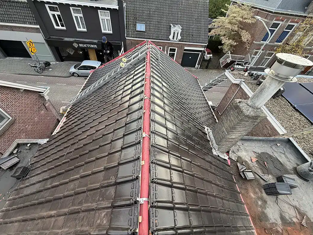 De bestaande dakpannen en het onderliggende dakbeschot waren verouderd, waardoor er risico op lekkages, warmteverlies en schade aan de constructie ontstond. De klant koos voor een complete dakrenovatie waarbij wij het volledige pannendak vervangen met nieuwe keramische dakpannen en een moderne onderconstructie.