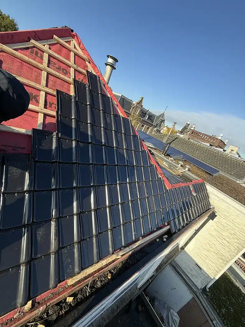 • Vakkundig leggen van nieuwe Koramic Tuile du Nord 44 dakpannen – Antraciet Engobe