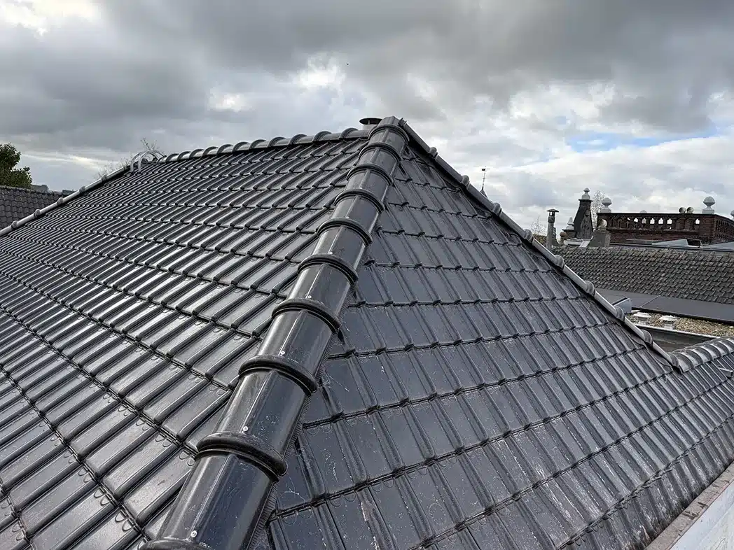 Het vernieuwde pannendak geeft de woning weer een frisse, moderne uitstraling. Dankzij de nieuwe dakpannen, folie en dakconstructie voldoet het dak weer volledig aan de huidige eisen op het gebied van duurzaamheid, ventilatie en waterdichtheid. De Koramic Tuile du Nord 44 dakpannen in Antraciet Engobe zorgen voor een strakke en tijdloze afwerking die perfect past bij de stijl van de woning.