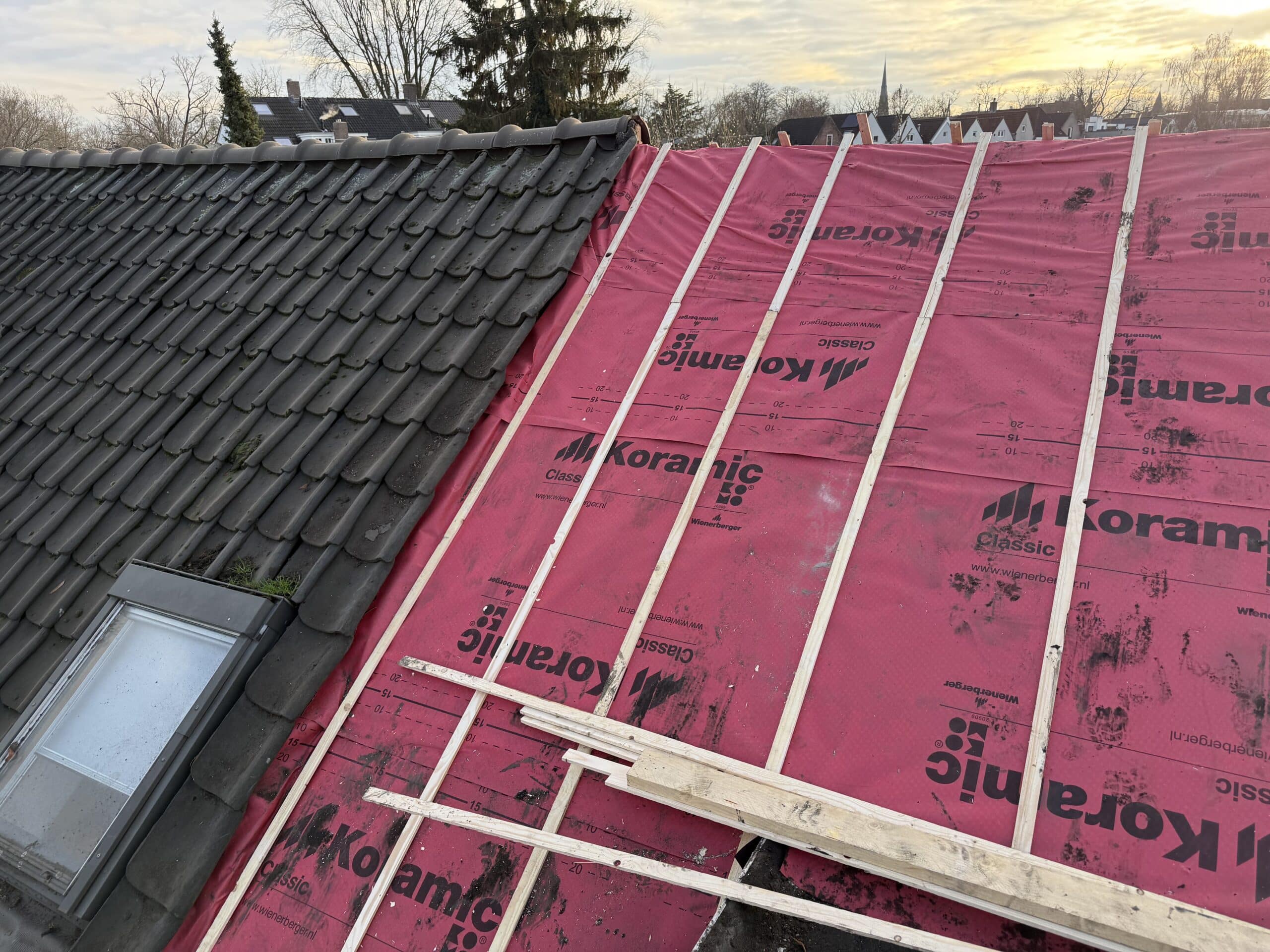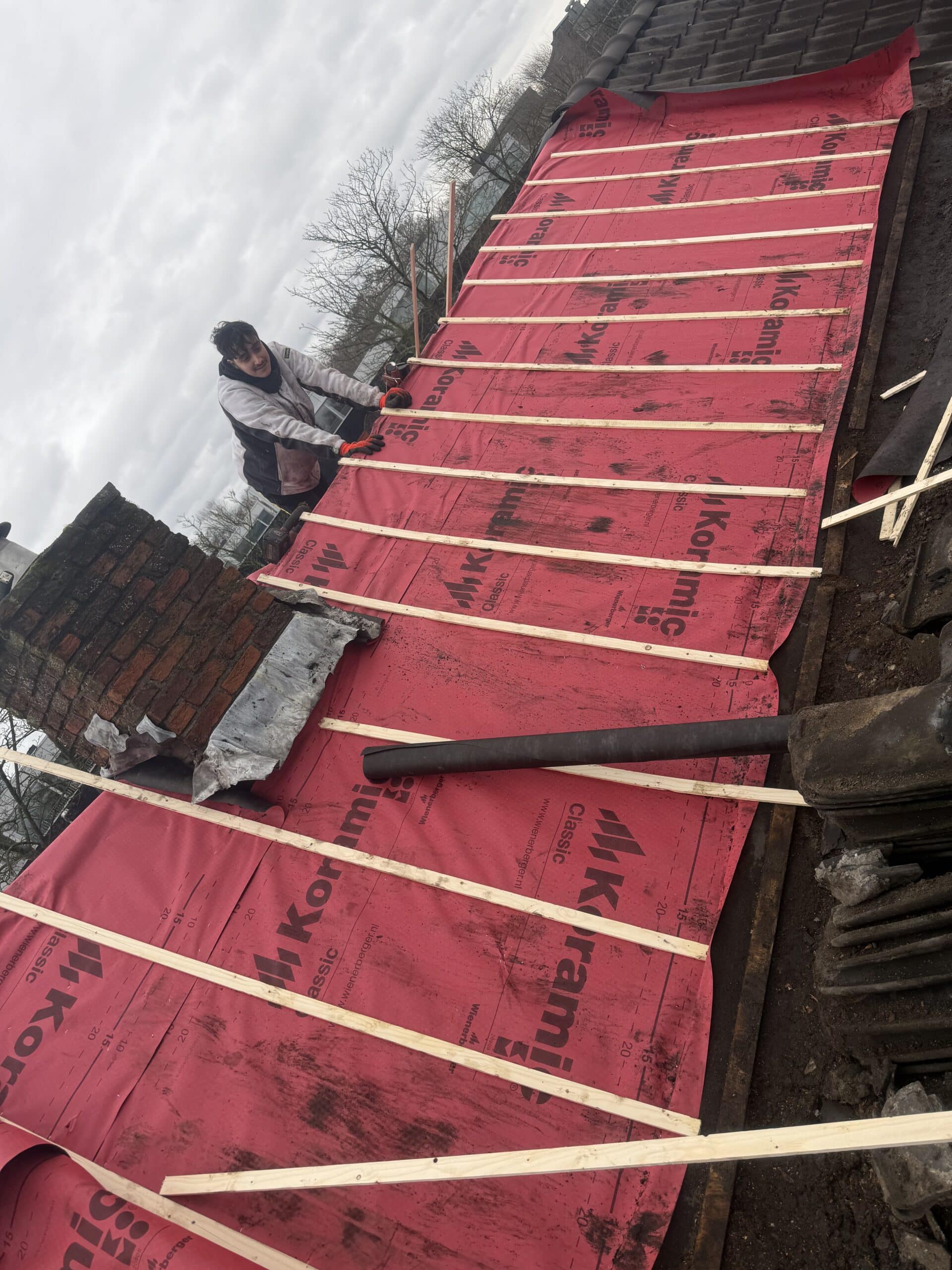 • Aanbrengen van een nieuwe waterkerende en dampopen onderdakfolie.