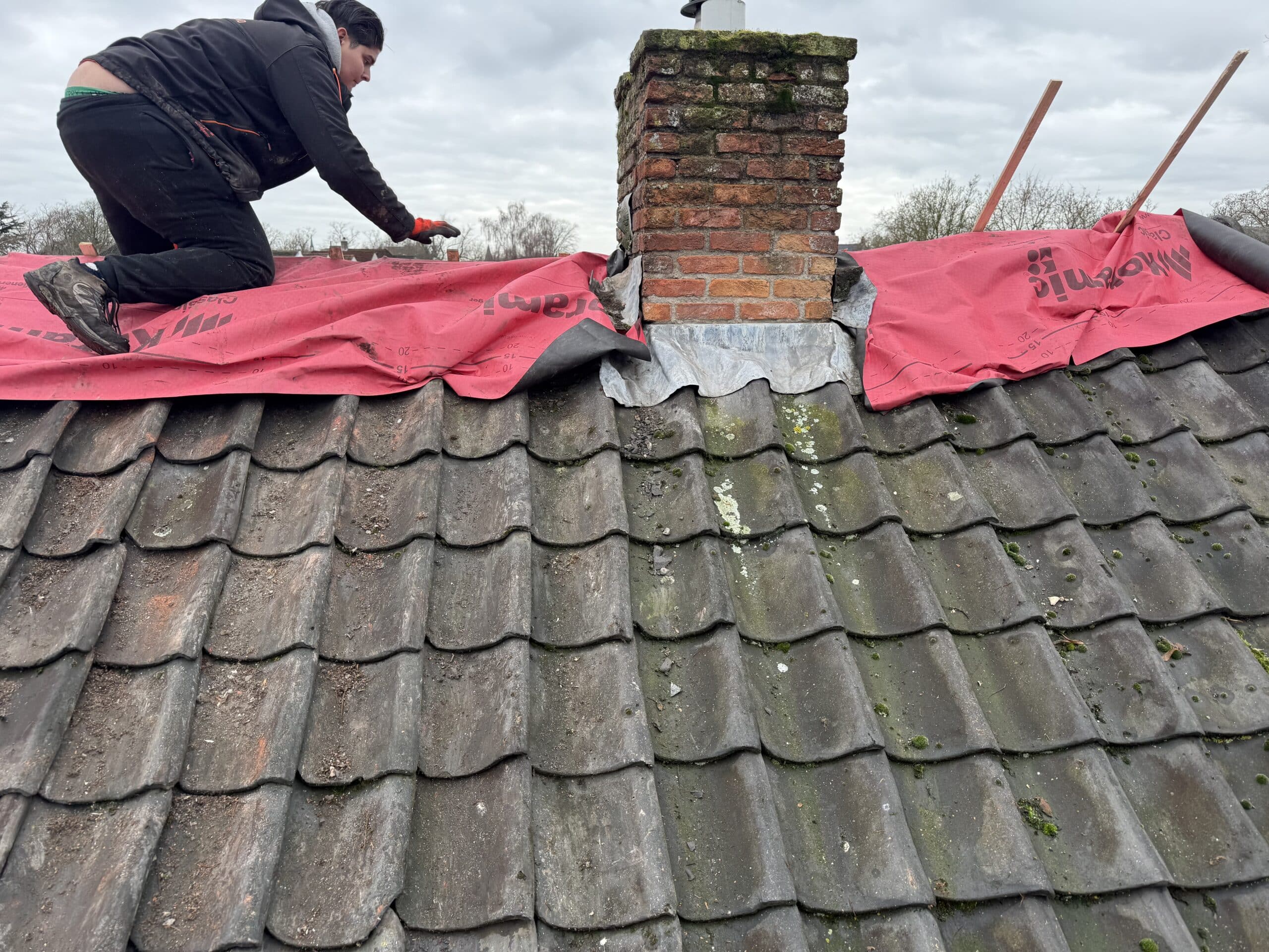 De dakpannen en onderliggende materialen hadden hun levensduur bereikt. Daarnaast was de schoorsteen niet meer in gebruik en nam het rookkanaal binnen onnodig veel ruimte in beslag. De klant was bezig met het verbeteren van de badkamer en wilde meer ruimte creëren in de kleine douche.
