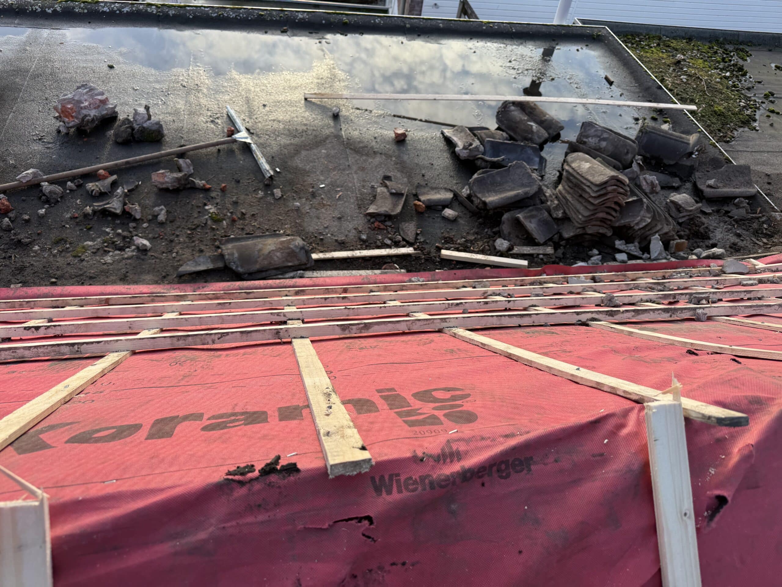 • Verwijderen van oude tengels, panlatten en dakfolie.
