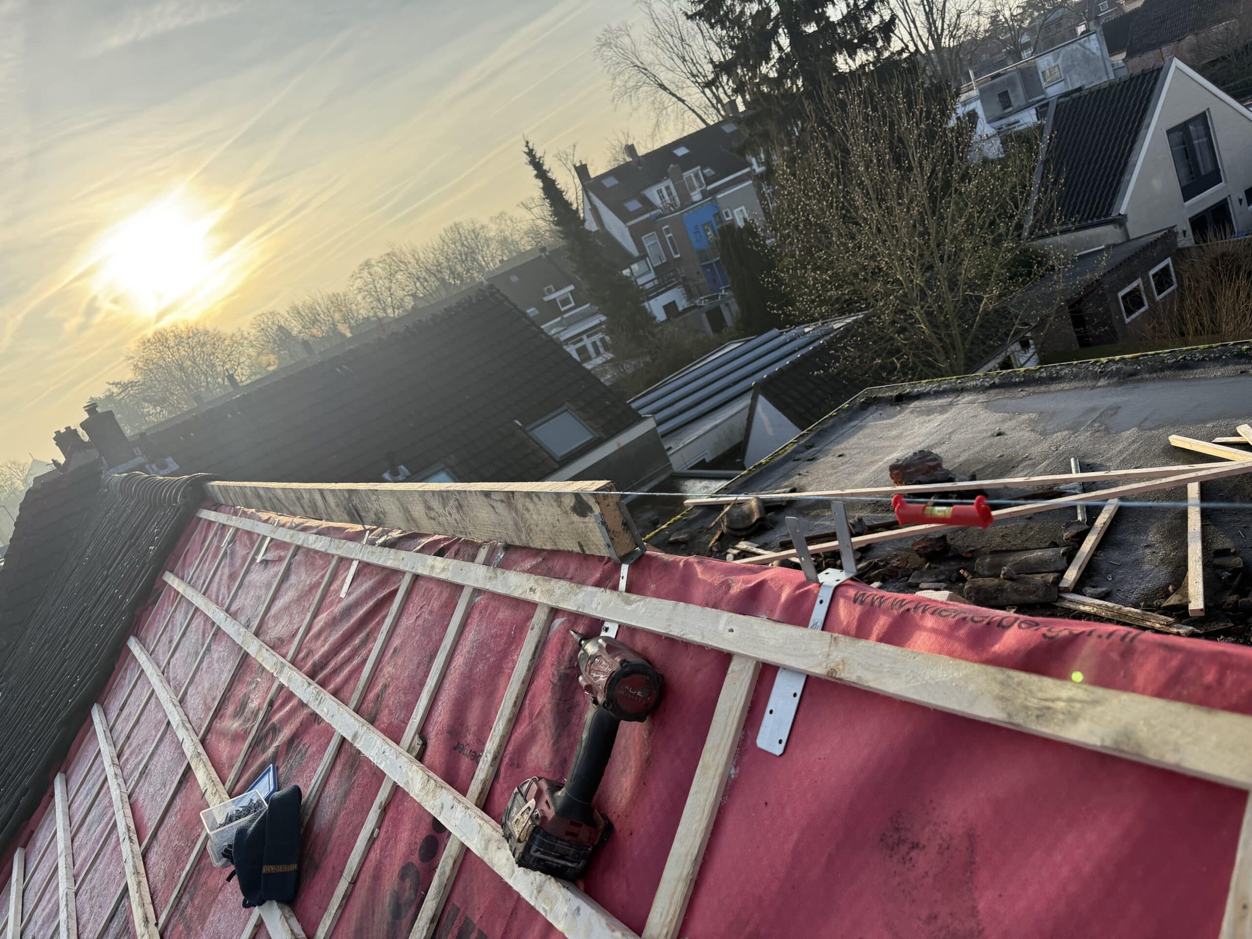 In Breda hebben wij het volledige pannendak van een tussenwoning vervangen. Het bestaande dak was verouderd en toe aan een complete dakrenovatie. Naast het vernieuwen van het pannendak hebben wij ook de schoorsteen verwijderd, inclusief het binnenliggende rookkanaal op zolder en de eerste verdieping. Dit is gedaan om binnen meer ruimte te creëren, met name in de bestaande, compacte douche.