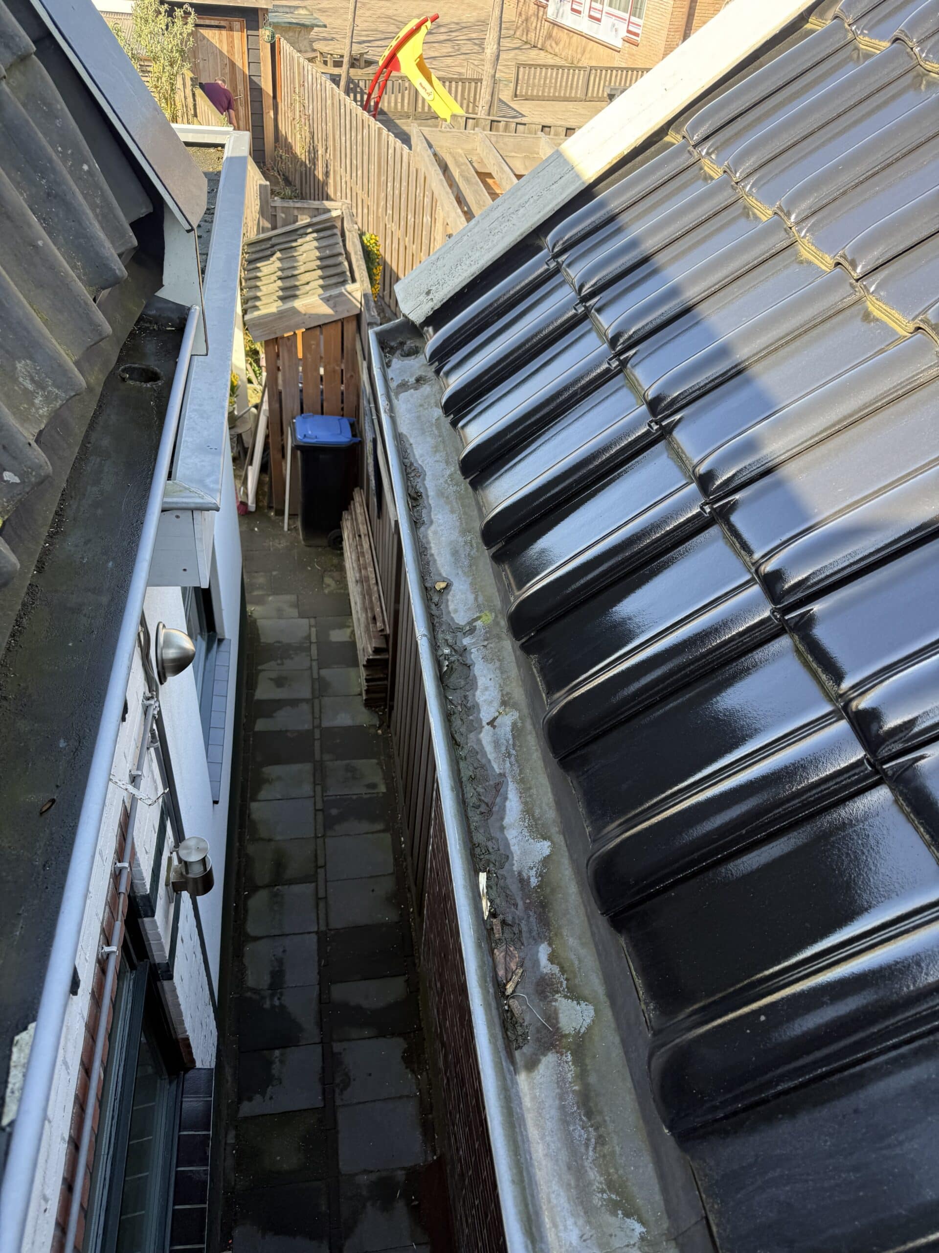 De woning in Bodegraven is nu voorzien van een nieuwe zinken dakgoot (NedZink B44) die perfect aansluit op het pannendak. Dankzij de bredere goot vallen de dakpannen weer correct in de dakgoot en wordt regenwater efficiĆ«nt opgevangen en afgevoerd. Door het nauwkeurig plaatsen van de gootbeugels op afschot – uitgemeten met een touwlijn – is een optimale werking gegarandeerd. Het geheel is strak afgewerkt, volledig waterdicht en klaar voor jarenlang gebruik.